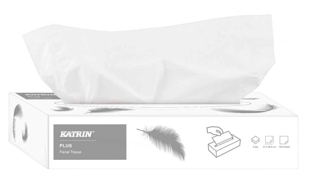Kosmētiskās papīra salvetes KATRIN Plus, 100 loksnes, baltas
