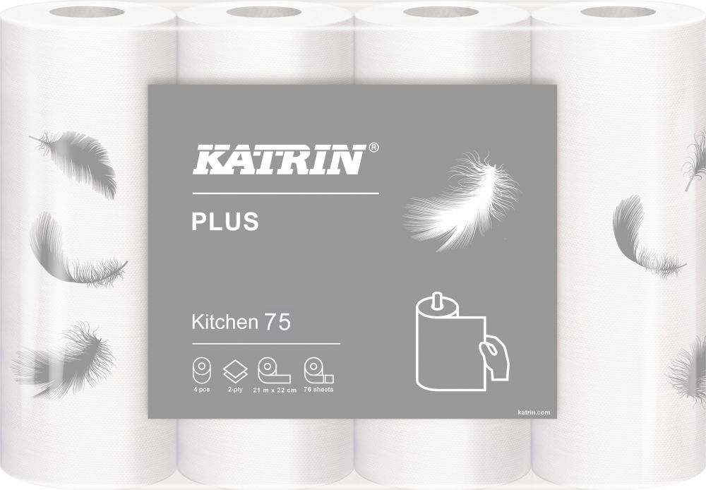 Papīra virtuves dvieļi ruļļos KATRIN Plus, 2 slāņi, 76 loksnes, 21 metrs, 4 ruļļi