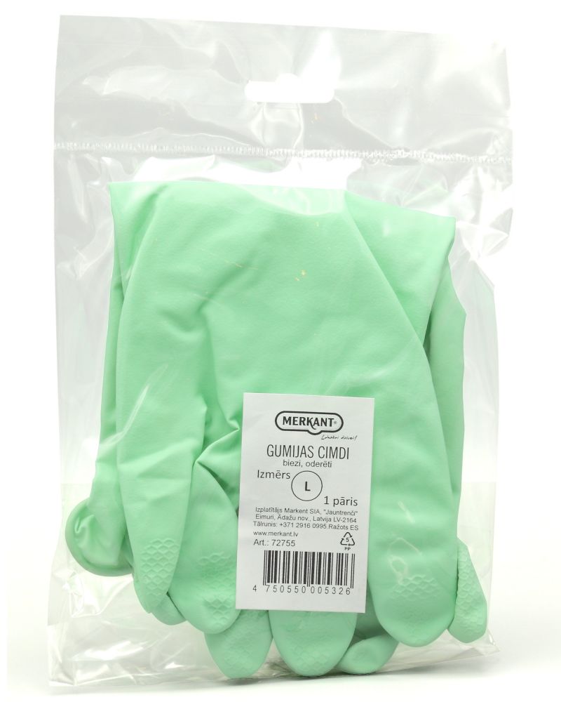 Gumijas cimdi biezie oderēti L gaiši zaļi