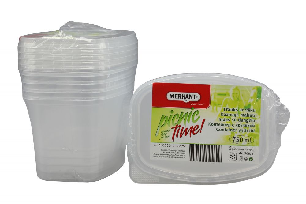 Trauks ar vāku ēdiena uzglabāšanai un saldēšanai 750ml, PP, 5 gab.